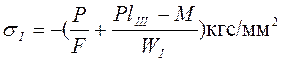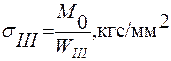 Решая совместно уравнения (1) и (2) определяем значения Р (кгс) и М (кгс/мм). Величину напряжений в тонких I, толстых II и поперечных III брусках определяют из уравнений: