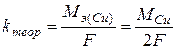 m = m2 – m1, где: m – масса осажденной меди, г; m2 – масса катода после электролиза; m1 – масса катода до электролиза. Вычисление электрохимического эквивалента меди проведите на основе 1 закона Фарадея: