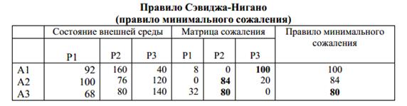 Для каждой альтернативы отмечаем максимальный ущерб. Выбираем альтернативу с минимумом максимального ущерба.Достоинство этого подхода заключается в том, что минимизируется максимально возможная ошибка. Это отражает позицию пессимистичного или, по крайней мере, осторожного ЛПР [8, с. 120-124].