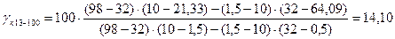 Определяем общий выход продуктов обогащения машинного класса 13 – 100 мм: γк13-100=11,36+6,46=17,83%; γпп13-100=6,67+2,15=8,82%; γп13-100=17,44+1,46=18,91%. Определяем зольность продуктов обогащения класса 13 – 100мм :