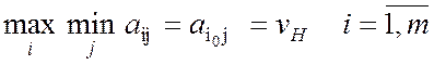 Игрок 1 использует логику, которая гарантирует ему максимальный выигрыш вне зависимости от поведения игрока 2. Значение, равное 4, называетсянижней ценой игры. В теории игр предполагается, что оба игрока действуют разумно, т.е. стремятся к получению максимального выигрыша, считая, что соперник действует наилучшим (для себя) образом. Пусть игрок 1 выбрал стратегию i.Тогда в худшем случае он выиграет (при любых стратегий игрока 2)