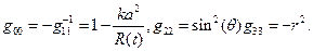 Теперь выпишем не равные нулю компоненты метрического тензора в метрике Фридмана: