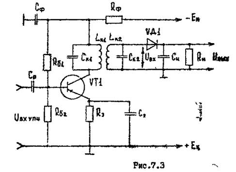 Рассмотрим принцип действия АД, подключенного к выходному каскаду УПЧ и собранного по схеме с последовательным подключением нагрузки (рис.7.3).