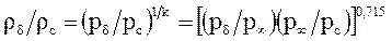 Плотность воздуха у поверхности конуса определяется по уравнению