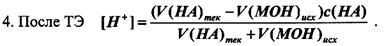 В точке эквивалентности, когда вся кислота полностью прореагирует со щелочью, рН раствора определяется ионами водорода, поступающими за счет автопротолиза воды, и становится равным 7,00. Соль МА образована сильной кислотой и сильным основанием, поэтому не гидролизуется. После точки эквивалентности рН раствора будет определяться количеством добавленной щелочи. Концентрация ОН--ионов растет пропорционально количеству добавленного NaOH.