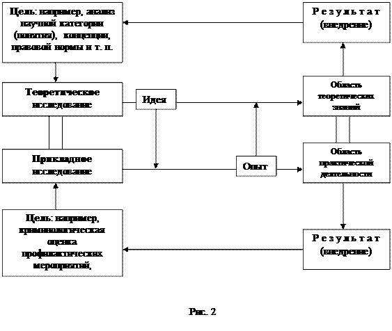 Научное – значит, основанное на принципах науки, или системы знаний о закономерностях, например, социальных явлений, процессов. В их числе – преступность, детерминанты преступности, управленческое (в основном правоохранительное) воздействие на них и др. Принципы – основные исходные положения, правила, которыми следует неукоснительно руководствоваться исследователю во всех технологических процессах, т.е. в разработке целей, задач, определении источников информации и их количества, сборе, обработке информации, выводах, предложениях и др. Характер цели придает общую направленность исследованию. В частности можно выделить два вида – теоретической и практической – направленности (см. рис. 2).