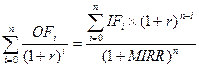 OFi – отток денежных средств в i-м периоде; IFi – приток денежных средств в i-м периоде; r – стоимость капитала данного проекта; n- продолжительность проекта. Логика применения проста: проект рекомендуется к принятию, если М1RR >WAСС, где WAСС - стоимость источника финансирования. Логика критерия РР такова: он показывает число базовых периодов, за которое исходная инвестиция будет полностью возмещена за счет генерируемых проектом притоков денежных средств. Проект принимается, если такое возмещение имеет место. Если базовый период - год, то значение РР исчисляется в количестве лет. РР = nmin, при котором Однако можно выделять и дробную часть года, если абстрагироваться от исходного предположения, что приток денежных средств осуществляется в конце года. РР = где PN - среднегодовая прибыль, генерируемая проектом (чистый приток денежной наличности).