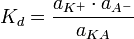 Классическая теория электролитической диссоциацииDate: 2015-10-07; view: 480. Классическая теория электролитической диссоциации была создана С. Аррениусом и В. Оствальдом в 1887 году. Аррениус придерживался физической теории растворов, не учитывал взаимодействие электролита с водой и считал, что в растворах находятся свободные ионы. Русские химики И. А. Каблуков и В. А. Кистяковский применили для объяснения электролитической диссоциации химическую теорию растворов Д. И. Менделеева и доказали, что при растворении электролита происходит его химическое взаимодействие с водой, в результате которого электролит диссоциирует на ионы. Классическая теория электролитической диссоциации основана на предположении о неполной диссоциации растворённого вещества, характеризуемой степенью диссоциации α, т. е. долей распавшихся молекул электролита. Динамическое равновесие между недиссоциированными молекулами и ионами описывается законом действующих масс . Например, электролитическая диссоциация бинарного электролита KA выражается уравнением типа: