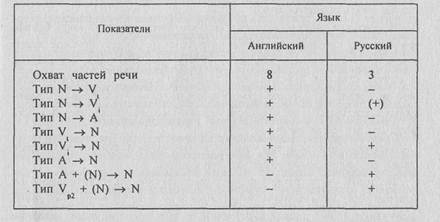 Примечание:в таблице даны лишь продуктивные типы безаффиксального словообразования.