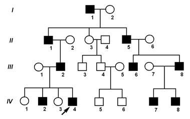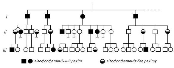 Мал. 33. Родовід сім'ї з гіпофосфатемічним рахітом