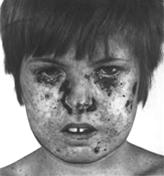 При пігментній ксеродермі на відкритих частинах тіла у дітей віком від 3 місяців до 3 років з'являються пігментні плями, які поступово перетворюються на пухлини (мал. 45). Хвороба має несприятливий прогноз, бо звичайно спостерігається летальний наслідок. Ген цієї форми пігментної ксеродерми та його локалізація поки-що не визначені. Хворі повинні уникати впливу на шкіру сонячного проміння, використовувати сонцезахисні креми. Для лікування пігментної ксеродерми використовують спеціальні ароматичні та клітиновідновлюючі ліки.