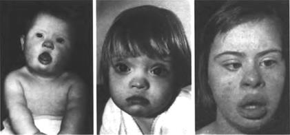 Мал. 48. Діти різного віку з характерними рисами синдрому Дауна
