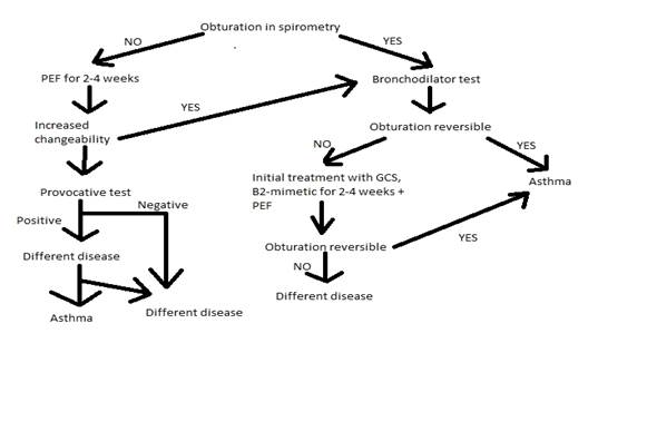 • PLAN OF EXAMINATION • General blood test – Leucocytosis and eosinophilia. • Test for IgE-dependent allergy – negative • Spirometry – FEV1 = 80% - better after inhalation of B2-mimetics. • PEF for 2-4 weeks – daily changes between 20% and 30%. • Chest X-RAY – Hyperinflation. • Pulsoxymetry and gazometry of arterial blood – PaO2 increased, PaCO2 decreased – hyperventilation. • Test of concentration of NO in expiration. • Sputum culture test.