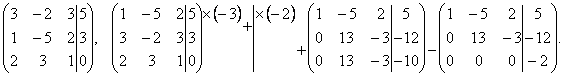 Отсюда из последнего уравнения легко найти x3, затем из 2-го уравнения x2 и, наконец, из 1-го – x1. При использовании метода Гаусса уравнения при необходимости можно менять местами. Часто вместо того, чтобы писать новую систему уравнений, ограничиваются тем, что выписывают расширенную матрицу системы: