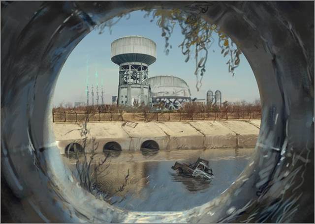 - Охлаждающий бассейн. Выход из трубы наружу, в ограждённый сеткой фрагмент бетонного водоканала. Эффектный вид на монументальные сооружения. На горизонте видны антенны Радара. Перестрелка в воде по колено. Игрок заходит в тоннель-сток, уходящий диагонально под землю.