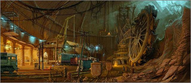Освещение выработокбудет нарочито-мрачным. Покачивающиеся лампочки отбрасывают резкие чёрные тени. Ощущение погруженности, огромной массы земли над головой, и чувства, что если тебя здесь сцапают, то уже никто не найдёт. Настроения в стиле Doom-3. В целом, грязно-желтое, тёплое освещение. Земляные, клаустрофобные оттенки.
