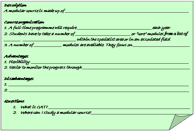 3. Listen to James Couzin, Education Consultant at “Universities UK” speaking on the new modular schemes. Complete the notes.