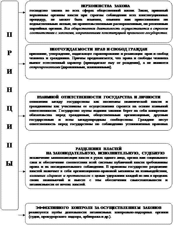 Понятие и основные черты гражданского общества, его взаимодействие с правовым государством.Date: 2015-10-07; view: 438. Сущность и основополагающие принципы правового социального государства. Общество Тема 7. Социальное правовое государство и гражданское 1. Сущность и основополагающие принципы правового социального государства. Идея правового государства имеет длительную историю и занимает важное место в политических учениях прошлого. Мысль о господстве закона в жизни народа, общества, государства как противовес самовластию и произволу личности правителя звучала уже в трудах античных мыслителей. Так Платон писал: «Я вижу близкую гибель того государства, где закон не имеет силы и находится под чьей-либо властью. Там же, где закон владыка над правителями, а они – его рабы, я усматриваю спасение государства и все блага, какие только могут даровать государствам боги». Сходные взгляды развивались другим выдающимся древнегреческим философом Аристотелем. Таким образом, уже в древности начинаются поиски принципов, форм и конструкций для установления взаимозависимости и согласованного взаимодействия права и власти. Однако возникновение целостной концепции правового государства относится к к. XVIII – нач. XIX в. – периоду становления буржуазного общества, когда в исторически прогрессивных политических теориях осуществлялась всесторонняя критика феодального произвола, утверждались принципы свободы и равенства людей, неотчуждаемости естественных прав, ответственности публичной политической власти перед обществом. В разработку концепции правового государства внесли вклад Г. Гроций, Б. Спиноза, Дж. Локк, Ш. Монтескье, Т. Джефферсон и др. Сам термин «правовое государство» утвердился в немецкой литературе нач. XIX в. в трудах К. Велькерта и Р. фон Моля. Правовое государство – это правовая форма организации и деятельности публично-политической власти и ее взаимоотношений с индивидами как субъектами права. Иначе говоря, правовое государство можно определить как государство, в котором господствуют право и закон. Основополагающими принципами правового государства являются: