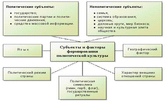 Типология политической культуры.В современных обществах существуют различные типы политических культур. Классической является типология предложенная американскими политологами Г.Алмондом и С. Вербой. Они выделили 3 основных типа политической культуры: 1. Патриархальная политическая культура. Данную культуру характеризует политическая неразборчивость, отсутствие интереса к политике, неучастие в политической жизни. Такой тип культуры присущ начальным этапам формирования политической системы, но его проявления продолжают влиять и на вполне современные общества. 2. Подданническая политическая культура. Характеризуется сильной позитивной ориентацией граждан на политическую систему и слабой степенью личного участия. Отличается от патриархальной тем, что в ней присутствует интерес к политике, но отношение к политической системе в основном эмоциональное. 3. Активистская политическая культура. Отличается стремлением граждан играть существенную роль в политических делах, что предполагает и высокий интерес к политике и политическую активность индивида. Известный политолог Э.Я. Баталов придерживается точки зрения о том, что человечество выработало только два основных механизма, действие и взаимодействие которых оказывает существенное влияние на все стороны материальной и духовной жизни общества. Эти механизмы – рынок и государство. В соответствии с этим он выделяет рыночную и этатистскую политические культуры. В условиях рыночной культуры политика понимается как разновидность бизнеса, универсальным принципом функционирования и развития общества является конкурентная борьба. Для этатистской культуры характерна главенствующая роль государственных институтов в организации политической жизни. Современные исследователи говорят также о различиях восточной и западной политической культуры. Западная культура базируется на индивидуализме как мировоззренческой и поведенческой позиции, когда абсолютным приоритетом является сам человек, его личная свобода. Этической нормой политической культуры восточного типа является традиция. Патриархально-клановая структура восточного общества предопределили слабые позиции человека по сравнению с государством. Политическая культура представляет собой относительно целостную систему ценностей, норм и образцов поведения, но она не исключает внутренней неоднородности. Разнообразные группы: национальные (этнические меньшинства), социальные (классы, слои), религиозные, демографические (молодежь, люди пожилого возраста), региональные (жители столицы и периферии) – имеют свои особенности в восприятии свободы, демократии, государства, власти, проявляют неодинаковую политическую активность.