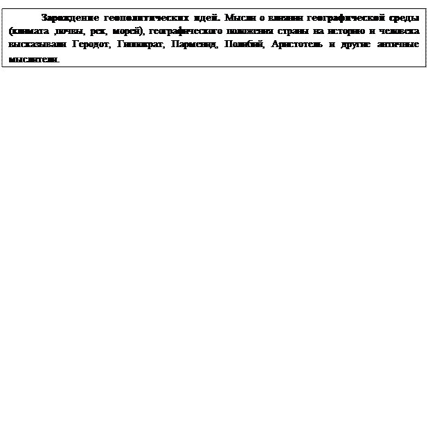 Этапы становления и развития геополитики.Date: 2015-10-07; view: 496. Теоретические основы геополитики. Основные геополитические идеи и концепции. Тема 21. Геополитика Основные геополитические идеи и концепции.Геополитика ( в переводе с греческого- управление государственными делами) – одно из фундаментальных понятий теории международных отношений. Первым употребил термин «геополитика» шведский профессор истории и политических наук Р.Челлен. Геополитика - это наука, которая изучает роль и воздействие природно- пространственных, географических факторов на политику любого государства.