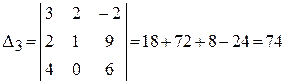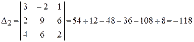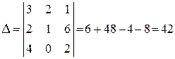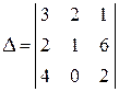 Вычислим его одним из способов (метод треугольников или метод дополнений):