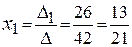 Решение системы находится по формулам Крамера: