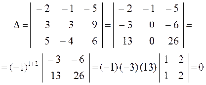 Решение. Используем признак линейной независимости для векторов с числовыми координатами. Найдем определитель: