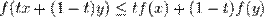 Опукла функція, її графік виділений синім і надграфік зафарбований зеленим. Вещественнозначная функція, визначена на деякому інтервалі (у загальному випадку на опуклому підмножині деякого векторного простору) опукла, якщо для будь-яких двох значень аргументу x , y і для будь-якого числа