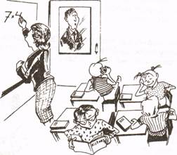 Find information about any British (European) or American university. Present this information to your groupmates. The director is looking into the classroom. A young teacher is speaking. But the children are not interested in math. They are doing something else. Tom______ (not/write) in his notebook, he______ (read) a history book. Sally______ (not/listen) to the teacher, she______ (talk) with her friend. Sandy______ (not/look) at the blackboard, she______ (talk) on the mobile phone.