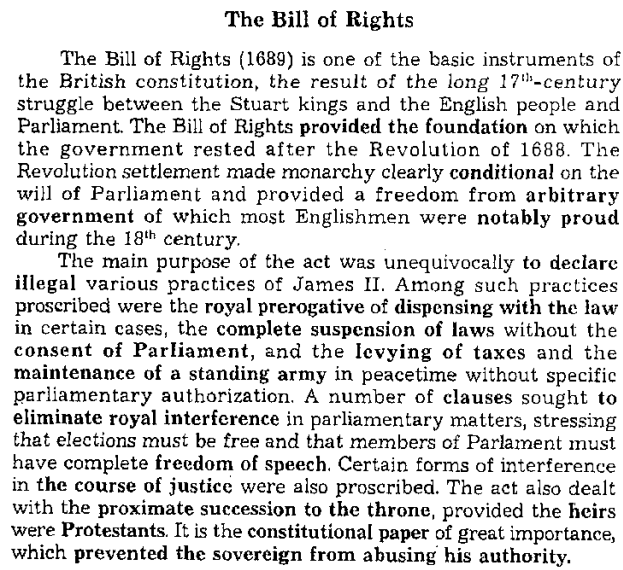TASK 16. Answer the following questions: 1. What events preceded the Bill of Rights? 2. Why did king James have to leave the country? 3. What documents regulates succession since 1688? 4. How were the rights of the monarch limited by the Bill of Rights? 5. What civil rights were protected by this document? 6. What was the influence of the Bill of Rights on political thinking of America?