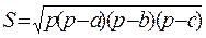Задача 1. Напишите программу, запрашивающую 3 стороны треугольника A, B, C и вычисляющую его площадь по формуле Герона: