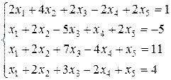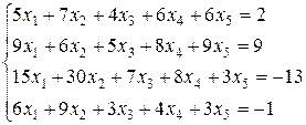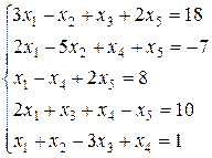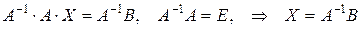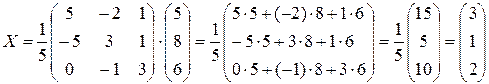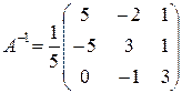 2) Данную систему можно представить в матричном виде: А×Х=В, где Умножим слева обе части уравнения на А–1, где А–1 – обратная для матрицы А матрица. Тогда Так как определитель матрицы А не равен нулю (d=5), то обратная матрица существует и равна: