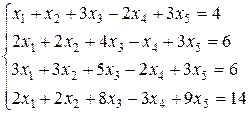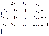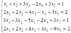 Этой матрице соответствует система Из последнего уравнения находим Ответ: х = 3; y = 1; z = 2. Задача 4. Найти общее решение системы.