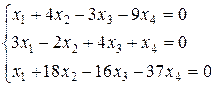 Получили трапециевидную матрицу, в которой только две ненулевые строки. Значит, ранг r = 2. Число неизвестных в системе n = 4. Так как r < n, то система имеет бесчисленное множество решений, зависящих от n – r = 4 – 2 = 2 параметров. Базисный минор – это отличный от нуля минор, порядок которого равен рангу матрицы. Пусть