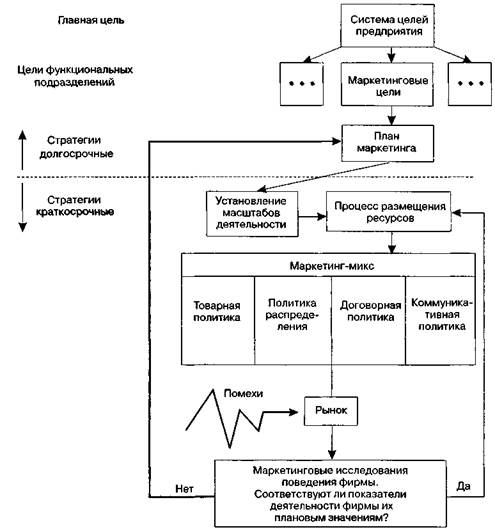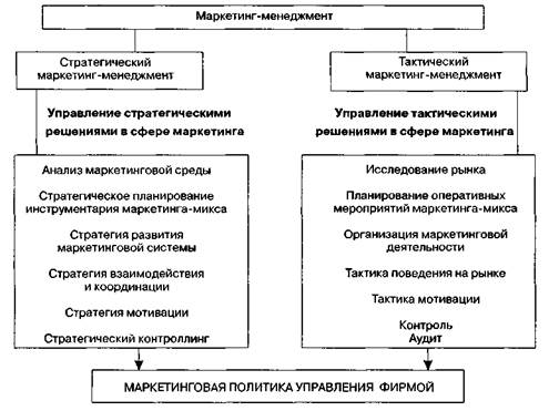 Рис. 1.18.Стратегия и тактика маркетинга-менеджмента Задачами маркетинга-менеджмента в таком случае являются разработка перспективной и тактической маркетинговой политики фирмы, организация управления маркетинговыми программами, средствами труда и трудовыми отношениями в сфере маркетинга В зависимости от характеристик базовой стратегии, конъюнктуры рынка, отрасли предпринимательства и состояния факторов окружающей среды выбирают соответствующую модель маркетинга-микса, а также разрабатывают комплекс мероприятий для мотивации персонала службы маркетинга и маркетологов по совместительству. Глава 2 МАРКЕТИНГОВЫЕ ИССЛЕДОВАНИЯ И БЕНЧМАРКИНГ