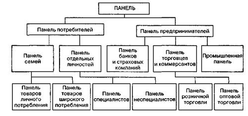 112__________________________ Глава 2. Маркетинговые исследования и бенчмаркинг Эффективность выбранного метода опроса всецело зависит от наличия и уровня интенсивности обратной связи с опрашиваемым, а также от репрезентативности выборки, точности высказываний, распыленности элементов в совокупной выборке и плана выборки. Эти параметры определяют стоимостные и временные показатели затрат выборочного метода исследований. Опросы могут быть одноразовыми или повторяющимися. Повторяющиеся опросы называют панелью. В качестве панели могут выступать группа лиц, предприятия. Панель — это вид непрерывной выборки. Она позволяет зафиксировать изменения наблюдаемых величин, характеристик. Важнейшими формами панели являются панель потребителей и панель предпринимателей (рис. 2.12).