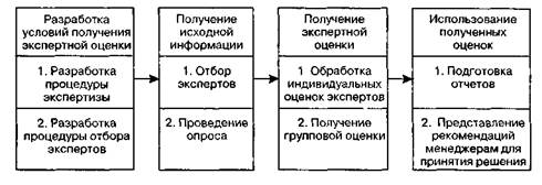 Рис. 2.14.Организация проведения экспертного прогнозирования Для прогнозирования рынка методы экспертных оценок могут быть использованы для решения следующих основных задач: • разработка средне- и долгосрочных прогнозов спроса; • краткосрочное прогнозирование спроса по широкому ассортименту продукции; • оценка формирующегося спроса на новые товары; • определение отношения потребителей к новым товарам и возможного спроса • оценка конкуренции на рынке; • определение положения фирмы на рынке и т. д. Достоинством экспертных методов является их относительная простота и применимость для прогнозирования практически любых ситуаций, в том числе в условиях неполной информации. Важной особенностью этих методов является возможность прогнозировать качественные характеристики рынка, например изменение социально-политического положения на рынке или влияние экологии на производство и потребление тех или иных товаров. К недостаткам экспертных методов относятся: субъективизм мнений экспертов, ограниченность их суждений. Среди разновидностей экспертных методов выделяется метод Дельфи. Специфика этого метода заключается в том, что обобщение результатов исследования осуществляется путем индивидуального письменного опроса экспертов в несколько туров по специально разработанной процедуре исследования. Надежность метода Дельфи считается высокой при прогнозировании как на срок от 1 до 3 лет, так и на более отдаленный период времени. В зависимости от цели прогноза для получения экспертных оценок может привлекаться от 10 до 150 экспертов. Достаточно распространенным методом экспертных оценок является «мозговая атака», или «мозговой штурм». Основой метода является выработка решения на основе совместного обслуживания проблемы экспертами. В качестве экспертов, как правило, принимаются не только специалисты по данной проблеме, Глава 2. Маркетинговая исследования И бенчмаркинг но и люди, которые являются специалистами в других областях знания. Дискуссия строится по заранее разработанному сценарию. На основе «мозгового штурма» У. Гордон в 1960 г. предложил метод синекти-ки. Его основное отличие от «мозгового штурма» заключается в том, что в качестве экспертов выступает стабильная по составу группа, которая от «штурма» к «штурму» накапливает определенный опыт. Кроме того, использование метода синектики допускает критические высказывания. В качестве основных способов реализации этого метода специалисты выделяют приемы, основанные на аналогии (фантастическая, личная, прямая, образная и т. д.). Морфологический анализ — это метод прогнозирования, в основу которого положено построение матрицы характеристик рынка и их возможных значений. Далее на основе перебора характеристик рынка и их значений получают различные варианты прогноза. Существуют и другие методы, описание которых можно найти в литературе [15; 105; 136; 140] и использовать для прогнозирования, однако следует иметь в виду, что выбор конкретного метода прогнозирования тесно связан с целью исследования и спецификой информации, а это требует более определенного обоснования. 2.5. БЕНЧМАРКИНГ КАК ФУНКЦИЯ МАРКЕТИНГОВЫХ ИССЛЕДОВАНИЙ Большинство возможностей создания и поддержания конкурентных преимуществ предприятия лежат за его пределами, т. е. заключаются в эффективном устан