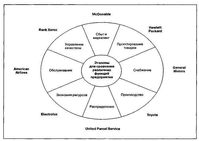 2.5. Бенчмаркинг как функция маркетинговых исследований 137 Одним из результатов успешных проектов бенчмаркинга является формирование функциональных бенчмаркинговых сетей и ассоциаций. Бенчмаркинговые сети формируются за счет поддержания постоянных контактов с партнерами по бенчмаркин-гу с целью отслеживания информации об эволюции применяемых методов работы. Известно, что полезность информации теряется со временем. После сбора некоторой совокупности фактов лицо, принимающее решения, должно воспользоваться этой информацией в течение ограниченного периода времени. Поэтому документальные источники и лица, к которым обращались при сборе бепчмар-кинговой информации, следует рассматривать как потенциально долгосрочные ресурсы. Эти источники, периодически предоставляющие полезную и надежную информацию, могут стать частью бенчмаркинговой сети. Бенчмаркинговая сеть сокращает число необходимых бенчмаркинговых контактов, оставляя наиболее надежные и «безотказные». За счет этого снижаются затраты времени на поиск информации и облегчается старт бенчмаркинговой деятельности. Бенчмаркинговая сеть является динамичным, а не статичным ресурсом. Она развивается по мере того, как со временем и в связи с началом новых проектов меняются потребности фирмы в бенчмаркинговой информации. В принципе, целью каждой компании, инициирующей бенчмаркинг, должно быть создание собственной сети бенчмаркинговой информации. Но такие сети формируются постепенно, после ряда успешных бенчмаркинговых проектов. Многие всемирно известные компании к настоящему моменту провели уже достаточное количество бенчмаркинговых исследований, чтобы положить начало формированию бенчмаркинговой сети. Например, IBM проводит многочисленные проекты бенчмаркинга как с предприятиями, которые ищут контакта с IBM. так и самостоятельно инициированный. У другого производителя компьютеров Digital уже к 1992 г. количество проведенных бенчмаркинговых проектов оценивалось на уровне двухсот. Концерн Ericsson, чьи филиалы расположены по всему миру, создал внутреннюю сеть обмена информацией, в рамках которой проводились сравнения затрат времени на производство продукции и производительности важнейших хозяйственных процессов. Одно из крупнейших шведских производственных предприятий составило перечень партнеров, достойных подражания, для бенчмаркинговой деятельности, представленный на рис. 2.18. Бенчмаркинговые сети могут также оформляться в виде консорциумов. Например, «Telecommunications Benchmarking Consortium» — это группа из 18 корпораций, принадлежащих телекоммуникационной отрасли. Туда входят, в частности, AT&T, Bell Atlantic, NYNEX, MCI, GTE. «Sematech» — консорциум 14 американских производителей полупроводников, включающий такие компании, как DEC, Hewlett-Packard, Intel, IBM, Motorola, Texas Instruments. В рамках этого консорциума компании обменялись огромным количеством информации о методах всеобщего управления качеством. Бенчмаркинговые консорциумы могут строиться не только по отраслевому, но и по функциональному признаку. Например, «Financial Quality Network» — функциональная сеть, состоящая из специалистов финансовых отделов таких компаний, как Federal Express, Caterpillar, Xerox, Westinghouse, DEC и Du Pont.