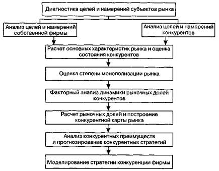 2.6. Сегментация рынка и диагностика конкурентной среды в системе маркетинга 163 • ШН — индекс Херфиндаля-Хиршмана, оценивающий равномерность распределения рыночных долей фирм-операторов анализируемого рынка. Для диагностики и прогнозирования перспективной конкурентной ситуации может быть использован следующий подход (рис. 2.27).