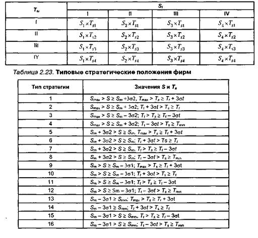 Обозначив показатели 5 и Ts для каждого состояния фирм через Т^ и 5(-, конкурентную карту можно представить в матричной форме: