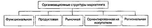 Рис. 3.15.Типы организационных структур маркетинга простотой, ее задачами являются обеспечение соответствия всей деятельности организации философии маркетинга, координация деятельности всех подразделений и служб организации в рамках ее маркетинговой политики (рис. 3.16). Наряду с отмеченными достоинствами функциональная структура имеет недостатки, к которым следует отнести усложнение процесса управления, рост затрат на координацию из-за высокой степени разделения работ и недостаточной координации вопросов товарной политики, а также длительную приспосабливае-мость к новым рынкам. Руководство такой структурой возлагается на одного руководителя (отдела маркетинга), так как ответственных за другие направления нет, что осложняет координацию и снижает эффективность, особенно при увеличении номенклатуры товаров и расширении рынков.