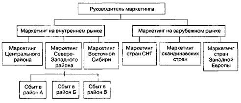 Рис. 3.12.Организационная структура фирмы, ориентированная на продажу работке организационных структур маркетинга. Однако поиск какой-то универсальной, стандартизированной организационной структуры маркетинга представляется нецелесообразным. Как отмечает Ф. Котлер, «идеальная организационная структура для отдела маркетинга еще не найдена» [62]. Основными факторами, которые отражают содержание организационной структуры маркетинга, являются: • функции, которые выполняет маркетинг; • продукты (товары), которые выводятся на рынок; • рынки, на которые с помощью маркетинга продвигаются товары; • покупатели, приобретающие товары, поступившие на рынок; • регионы, на которых размещены рынки или покупатели.
