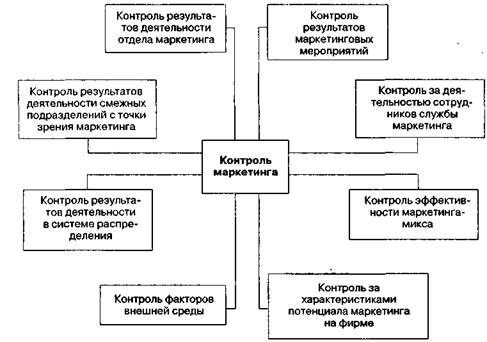 Рис. 3.24.Процесс координации в системе маркетинг-контроллинга кетинга включает функции не только диагностики, но и анализа. Он служит для адаптации запланированных инструментов политики маркетинга и изменения факторов окружающей среды. Благодаря контролю результаты внедрения маркетинговых мероприятий отражаются в планах маркетинга и предприятия в целом. Поэтому уже на стадии планирования следует предусматривать возможные мероприятия по контролю маркетинга. Процесс контроля маркетинга включает пять основных стадий: 1) обоснование плановых показателей, которые должны подлежать контролю (на 2) измерение (сбор данных) фактических показателей результатов деятельности; 3) сравнение плановых и фактических показателей результатов деятельности; 4) анализ возможных отклонений фактических показателей от плановых; 5) формирование мероприятий по адаптации показателей текущей и перспектив Основные задачи контроля в сфере маркетинга и содержание мероприятий по их решению приведены соответственно на рис. 3.25 и в табл. 3.16. В зависимости от способа ведения мероприятий по адаптации, приспосабливаемое™ системы управления маркетингом к возможным изменениям факторов
