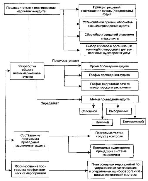 неудовлетворительную работу служб маркетинга и контроллинга и может привнести к снижению гарантий эффективной долгосрочной деятельности фирмы (рис. 3.28). Контроллинг наряду с контролем включает и аудит маркетинговой деятельности. Аудит — это вид деятельности, осуществляемый компетентным независимым лицом, заключающийся в сборе и оценке фактов, информации, касающихся функционирования и положения экономического объекта (самостоятельного хозяйственного подразделения), и в подготовке на основе установленных критериев вывода о качественной стороне экономического поведения этого объекта. Следовательно, под аудитом понимаются независимая проверка и составление заключения о финансовой отчетности предприятия. Главная цель аудита в предпринимательских структурах — это определение достоверности финансовой отчетности компании, а также контроль за соблюдением компанией определенных законов и норм хозяйственного права и налогового законодательства. Первые независимые аудиторы появились в акционерных компаниях Европы уже в XIX в. Возникновение аудита связано с разделением интересов тех, кто непосредственно занимается управлением предприятием (администрация, менед-