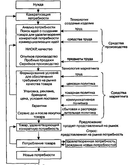 Рис. 4.2.Схема превращения изделия в товар При анализе факторов развития и появления новых потребностей необходимо учитывать, что существуют личные и производственные потребности, уровень динамики которых в основном характеризуется следующими показателями [30].