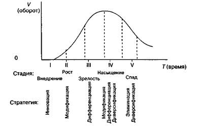 Рис. 4.10.Изменения продолжительности жизни и продолжительности развития товара Концепция жизненного цикла товара имеет большое значение для практики предпринимательства. Во-первых, она ориентирует руководителей на проведение анализа деятельности предприятия с точки зрения как настоящих, так и будущих позиций. Во-вторых, концепция жизненного цикла товара нацеливает на проведение систематической работы по планированию и разработке новой продукции. В-третьих, данная концепция помогает формировать комплекс задач и обосновывать стратегии и мероприятия маркетинга на каждом этапе жизненного цикла, а также определять уровень конкурентоспособности своего товара по сравнению с товаром конкурентной фирмы. Необходимость концепции жизненного цикла товара проявляется не только при анализе поведения отдельно взятого товара, но и при анализе оборота и прибыли общей программы продаж ассортимента продукции, анализе ввода на рынок и элиминации товара; обосновании мероприятий по улучшению дизайна и внеш- 4.3. Конкурентоспособность товара 245 него вида товара, его упаковки. С помощью графического изображения жизненного цикла товара можно достаточно быстро выявить сильные и слабые стороны программы сбыта. Зная, на какой стадии жизненного цикла находится товар, можно разработать конкретные мероприятия товарной политики в соответствии с присущей этой стадии стратегией маркетинга (рис. 4.11) и тем самым контролировать конкурентоспособность товара на рынке.