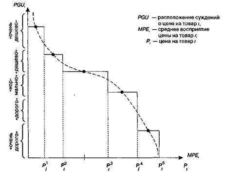 Рис. 5.10.Характеристики знания цены ценах и их распределении с индивидуальными реакциями согласия с ценами. При якоре суждения о ценах речь может идти, во-первых, о справочной (рекомендуемой) цене (например, цена в одной продуктовой группе, воспринимаемая как средняя) и, во-вторых, о пороге ценового согласия.