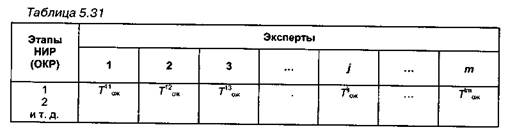 2. Составление и заполнение данными сводной матрицы ожидаемой трудоемкости выполнения работы (табл. 5.31).