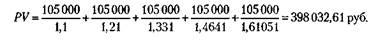 Рассматриваемый производитель считает, что его машина обеспечивает чистый годовой доход на 5% выше, чем машина конкурента. Тогда сегодняшняя ценность доходов, ожидаемых от эксплуатации его печатной машины (PV) (или капитальная цена блага), равна: