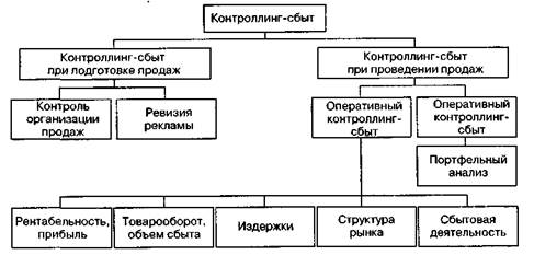 Рис. 6.14.Источники информации для контроллинга-сбыта Процесс информационного обеспечения контроллинга-сбыта включает следующие стадии: регистрация (сбор) данных; хранение данных; подготовка и предварительная обработка данных; редактирование и обеспечение качества данных; формирование информационной базы (верификация данных, уплотнение, концентрация, распределение по критериям, отбор). Структура контроллинга-сбыта должна отражать принятую на фирме концепцию сбыта. Эффективная концепция сбыта предполагает направление всех ресурсов сферы сбыта на установление долгосрочных связей с покупателями (клиентами), обеспечение их спроса и получение запланированной прибыли. Такая концепция сбыта должна быть ориентирована на решение стратегически важных вопросов. • Следует ли увеличить активность сбытовой деятельности и на каких этапах в • Каким должен быть уровень качества предлагаемых товаров и услуг? • Какой стратегии взаимодействия с покупателем надо придерживаться? • На каких сегментах рынка возможно появление новых покупателей? 6.2. Организация и контроллинг в системе сбыта 455 • Какие преимущества имеет (должна иметь) фирма по сравнению с конкурен • Как активизировать личные связи с постоянными клиентами? • Охватывает ли стратегическая концепция сбыта все предприятия или остается Структура контроллинга-сбыта включает стратегический и оперативный контроллинг-сбыт (рис. 6.15). Как видим, в структуре контроллинга-сбыта выделяются две области его функционирования: подготовка продаж и их проведение.